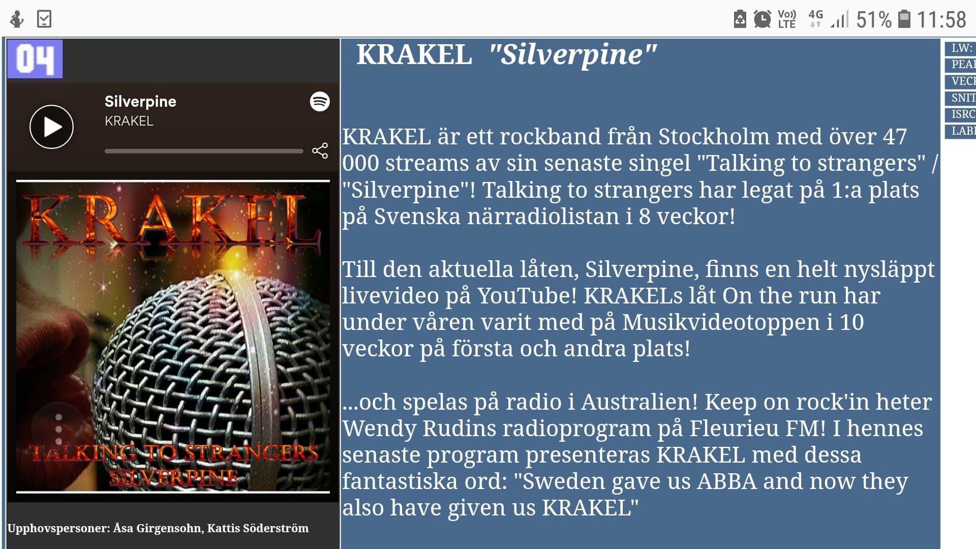 Om du inte vill vänta på releasen kan du höra låtarna spelas på radio i Australien tidigt på måndag morgon, 4.30 (12.00 lokal tid) på fleurieu fm. Showen heter Keep on Rockin och värd är Wendy Rudin som ensam har fått äran att hålla världspremiären!