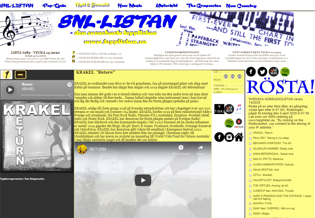 Return ligger kvar som etta på Svenska närradiolistan och KRAKEL tackar alla som röstar.
