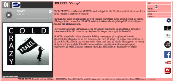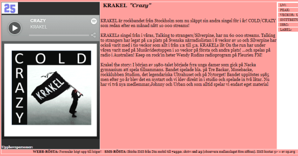 Vi kan också gladeligen medela att Cold och Crazy bubblar på Svenska närradiolistan och nu befinner sig på plats 34 och 35.