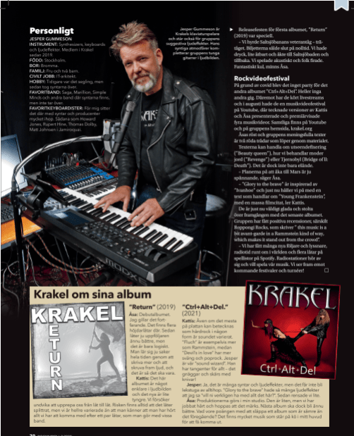 Jesper har spelat keyboards och ett antal instrument, som balalajka mm. sedan unga år. Han har spelat i flera olika band, främst keyboard. Jesper är influerad av syntmusik såklart, men även av tyngre rock där syntar ingår men inte tar över, exempelvis Saga, Marillion och Simple Minds. Jesper bidrar till KRAKELs låtskatt både med egen musik och coola loops.. Han är en ljudkonstnär som kompletterar bandets tunga gitarrer med syntiga atmosfärer.